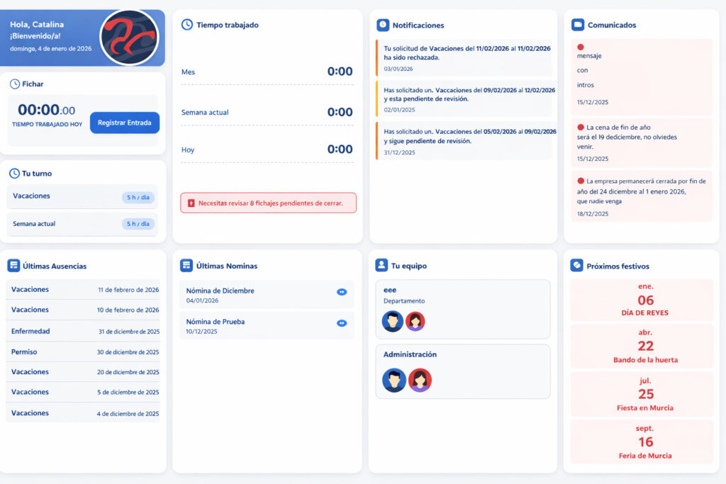 Controla Fichajes, vacaciones, permisos y comunicaciones al instante.